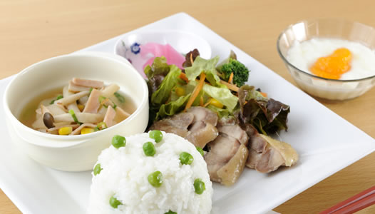 • ・豆ごはん ・鶏肉の塩こうじ焼き