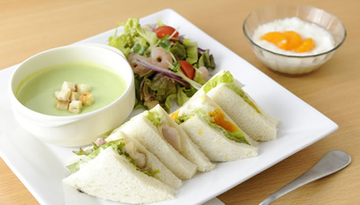 • ・ミックスサンドイッチ ・グリンピースのスープ